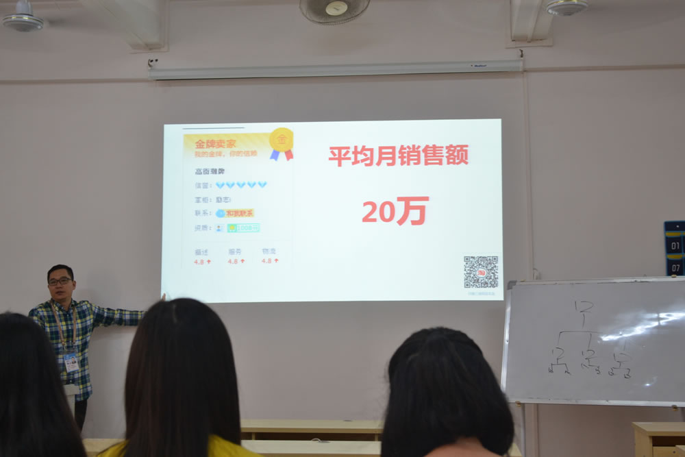 其次是曾汝萍老师指导的“高街潮牌”淘宝店。该团队由李金锋等五位2016级中高技学生组成。他们是2016级学生中的创业明星,管理着3家淘宝店铺。其中一家店铺为金牌卖家,主营产品为潮牌服饰,月平均销售额达到80多万元。主讲人李金锋同学重点阐述了店铺的运营过程及未来计划。