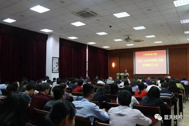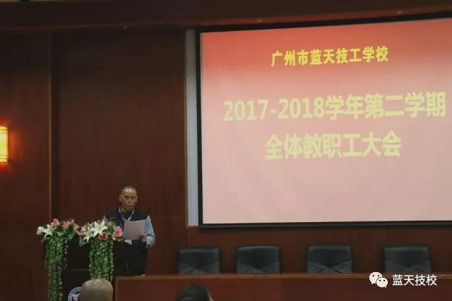 2018年3月4日,在多功能报告厅隆重召开2017-2018学年第二学期教职工大会,总结过去一年来学校各项工作所取得的成绩,同时对2018年重点工作进行了部署。学校领导罗荣禄、杨长生、丁海洋、黎筱轮、谢齐桂、赖乾佑、各部门负责人以及全体教职工参加了大会。会议由办公室罗来柏主任主持。