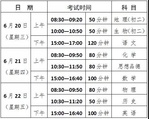 2018年初中毕业生学业水平考试时间安排表