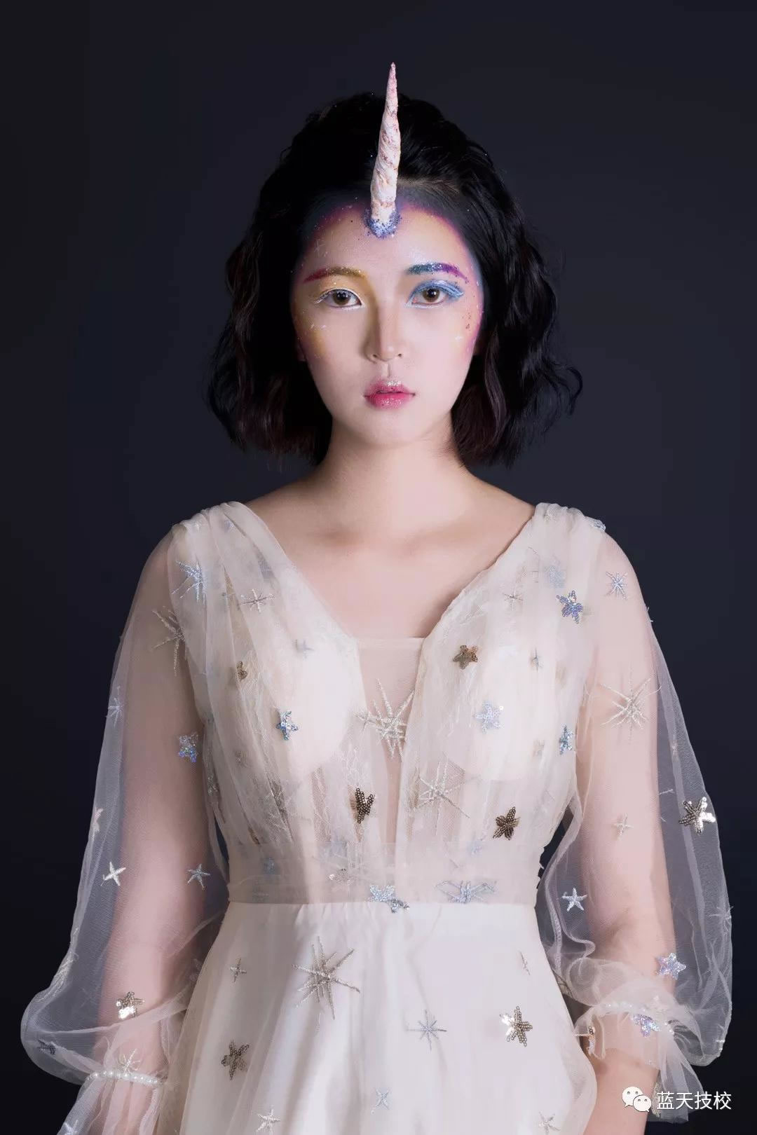 灵感来自该小时候喜欢的芭比,芭比是大多数女生的童年玩伴,以纯正的腮红,突出婴儿白里透红的质感,娃娃的脸型,高雅的气质,神秘的色彩做出梦幻芭比,搭配着白色迷人的羽毛,与小鸟的衬托,展现迷人可爱的造型
